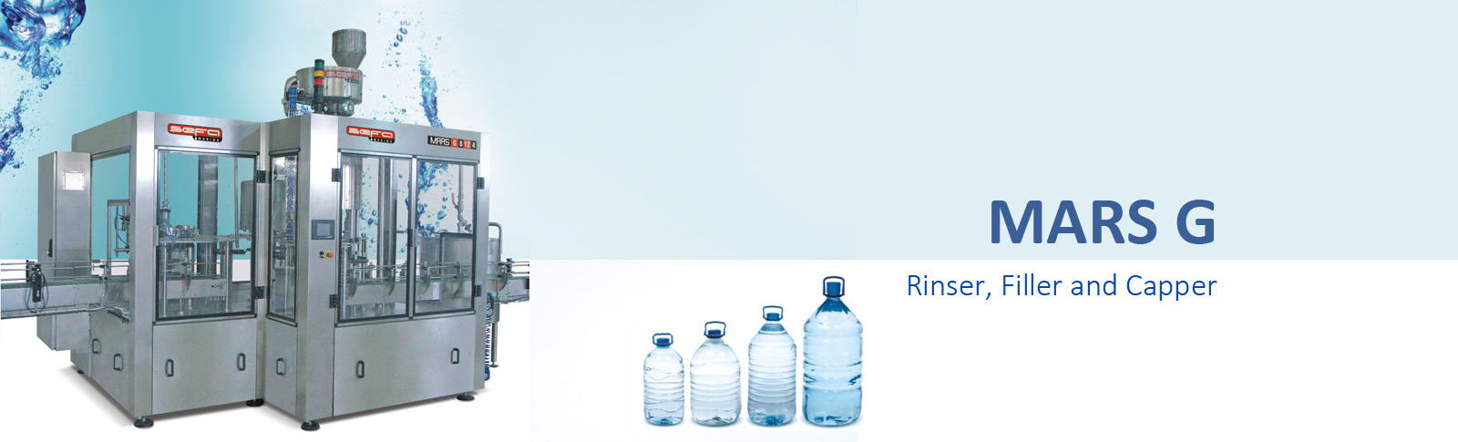 MARS Rinser, Filler and Capper is used for bottling liquid products up to 3 lt. 5 lt. 10 lt. Suitable for glass bottle, PET and PVC. Monoblock is a special machine designed on NECK HANDLING SYSTEM and it dosn't need a bottle change set.